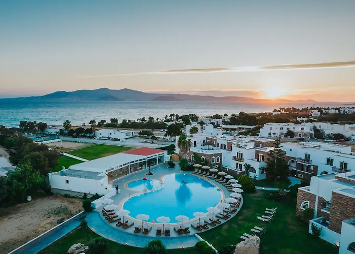 Aegean Palace offers 4-star luxury accommodations just steps from the exotic, sandy beach of Plaka. The hotel features a spa, two swimming pools, and extensive gardens with a poolside bar, making it a preferred destination for leisure travelers.
