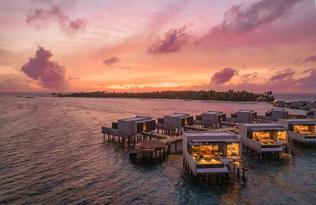 Alila Kothaifaru Maldives, a 5-star resort, offers luxurious villas with private pools and stunning views. Amenities include outdoor swimming pools, a fitness center, and a variety of dining options including Mediterranean and seafood cuisine.