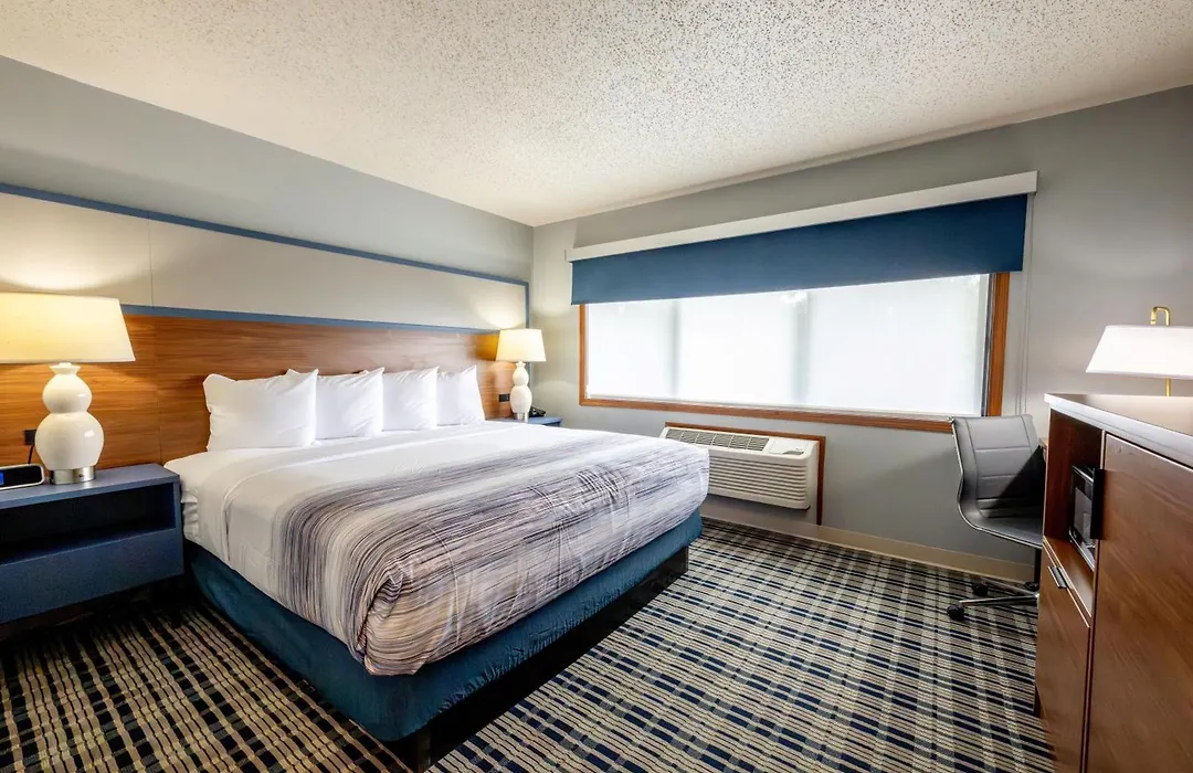 All guestrooms at AmericInn by Wyndham Sturgeon Bay include free WiFi, flat-screen HDTV, mini-refrigerators, microwaves, coffee makers, and desks. Suites offer additional amenities like whirlpools and fireplaces. The hotel has a games area with billiards and arcade games to enhance guest leisure.