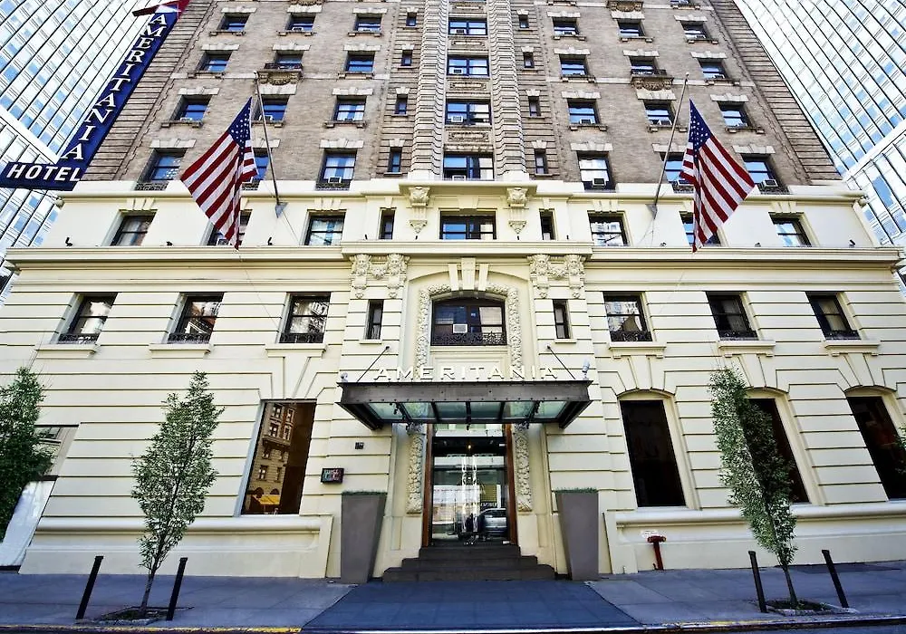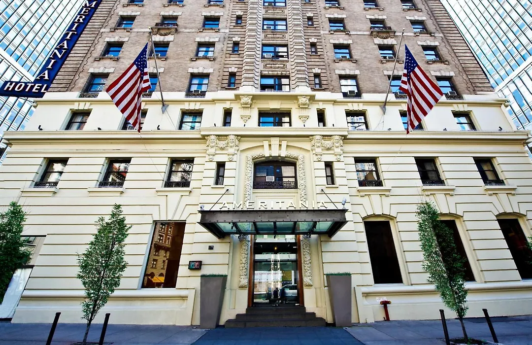 Ameritania At Times Square is a 4-star hotel with a Booking.com rating of 8.1, located at the intersection of Broadway and West 54th Street. This boutique New York hotel offers modern accommodations and a range of amenities, including a fitness center and Bar Ameritania, providing guests with a vibrant social scene.