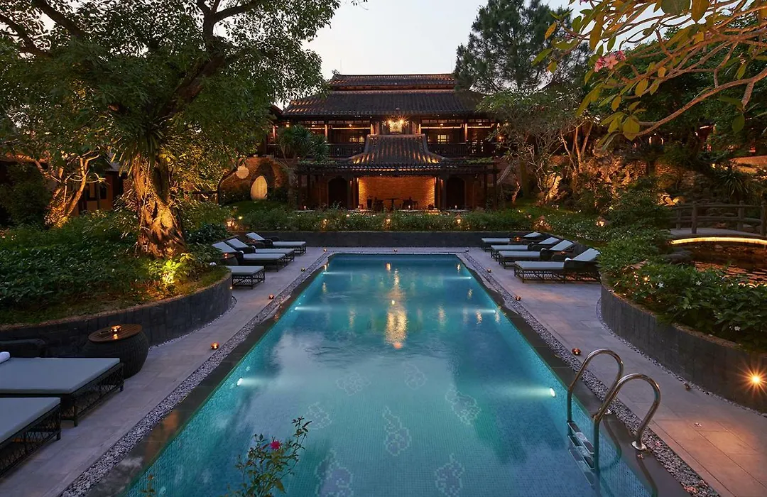 Ancient Hue Garden Houses, a 5-star Hue hotel rated 9.6/10 on Booking.com, offers five imperial Royal Homes and four French colonial Villas in Kim Long village, near the Imperial Citadel and Thien Mu pagoda. The hotel features an outdoor pool, fine dining, and bicycle rentals.