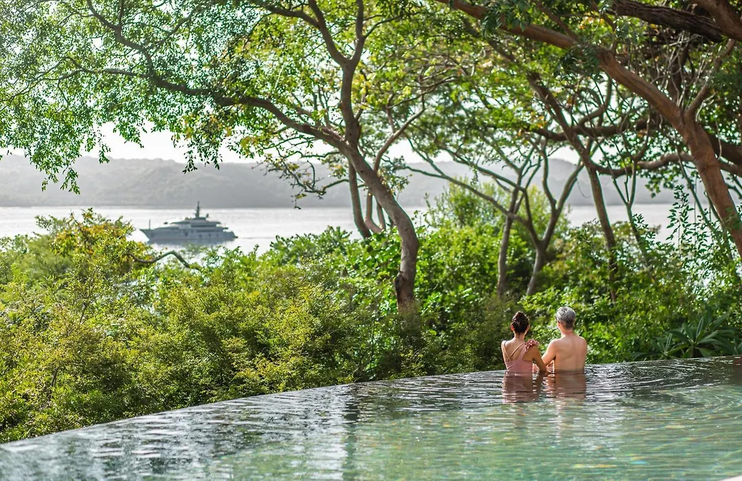 Andaz Peninsula Papagayo Resort, Costa Rica, By Hyatt is a 5-star hotel featuring modern amenities and stunning views of the jungle and Culebra Bay. This architectural gem, with a minimalist jungle luxury design, offers four onsite restaurants, a full-service spa, and an extensive pool area.