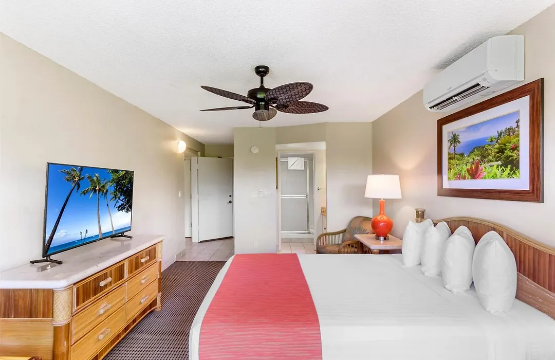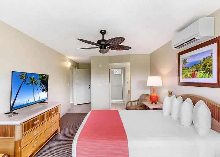 Each unit at Maui Banyan Vacation Club includes air conditioning, a private balcony, and a fully equipped kitchen in one and two-bedroom units. The studio suites provide cozy accommodations with kitchenettes, while the one-bedroom units offer queen-size beds and queen sofa sleepers, comfortably accommodating up to four guests.
