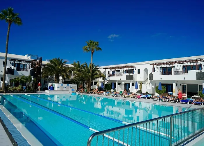Plaza Azul, an 8.1/10 rated 2-star aparthotel in Puerto del Carmen, offers a range of services including an outdoor pool, bar, and restaurant. This complex features 64 apartments grouped around a large garden pool and provides convenient amenities like a mini-market and 24-hour reception service.