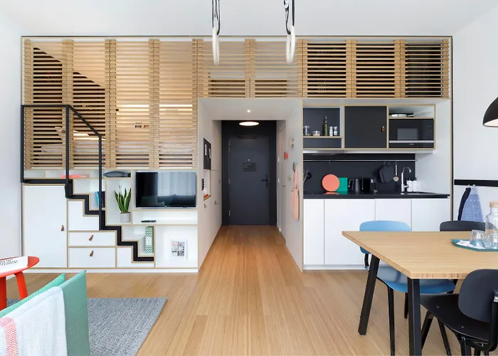 Zoku Copenhagen offers a unique experience as a home-office hybrid, ideal for business travelers staying from a few days to a few months. This 4-star Copenhagen hotel features a rooftop bar and a fully-equipped kitchen in each loft, promoting socialization among like-minded guests.
