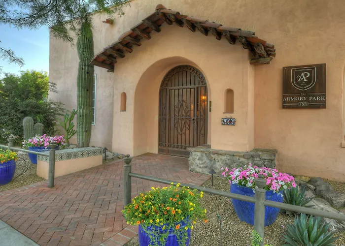 Armory Park Inn, a 4-star Tucson hotel with a 9.8/10 rating, features seven stylish rooms in a reimagined historic Sonoran-style house. Guests enjoy luxurious amenities, including custom-made furniture and a premier StarGazing program.