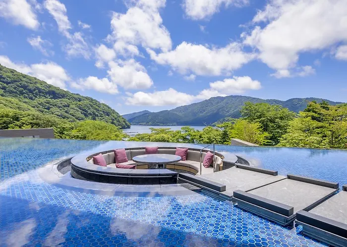 Hakone Ashinoko Hanaori is a 4-star ryokan featuring hot spring amenities and views of Lake Ashi. The hotel offers 154 air-conditioned rooms equipped with free WiFi, flat-screen TVs, and balconies. Guests can access a sauna, on-site dining, and convenience shopping.