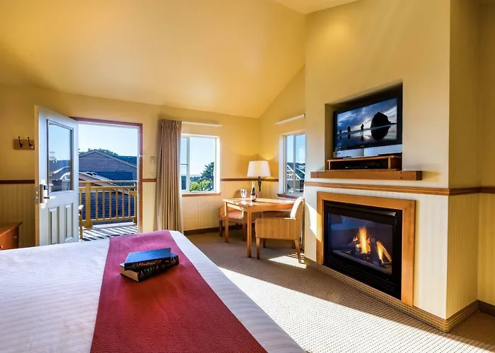 Guest rooms at Inn At Cannon Beach are warm and inviting, featuring a mix of standard and enhanced amenities like flat-screen TVs, Keurig coffee makers, and cozy gas fireplaces. Select suites include full bathrooms with whirlpool tubs, partial kitchenettes, and sofa sleepers, catering to families and groups.