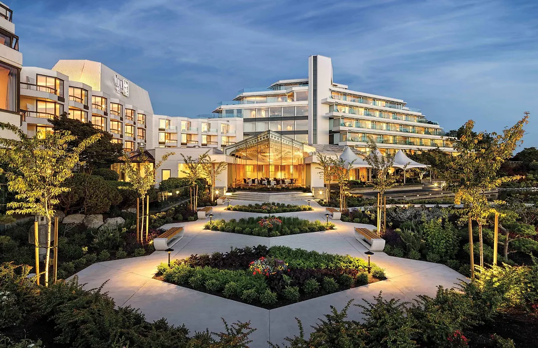 Inn At Laurel Point features stunning views of Victoria's Inner Harbour, combining modern design with tranquil surroundings. This 4-star Victoria hotel offers an indoor pool, a heated outdoor hot tub, and access to the scenic David Foster Harbour Pathway.