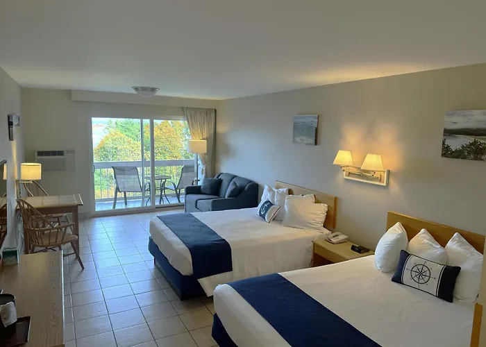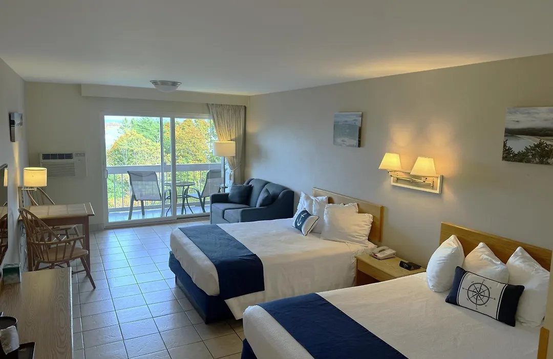 Rooms at Atlantic Eyrie Lodge are equipped with amenities such as flat-screen cable TVs, microwaves, and Wi-Fi. Most rooms feature private balconies that provide stunning views of Frenchman Bay. Pet-friendly options are available on the first floor.
