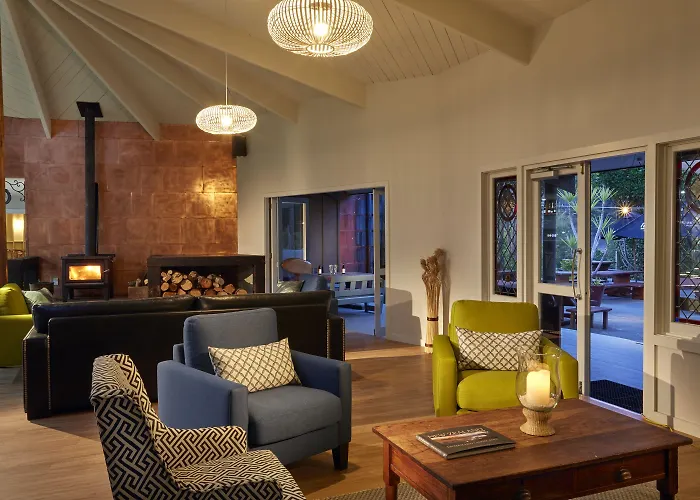 Dining options include Harakeke Restaurant, which uses herbs and vegetables from the on-site organic garden, offering regional cuisine. For casual dining, the outdoor pizzeria serves a selection of pizzas and snacks amidst native trees, popular among visitors and locals alike.