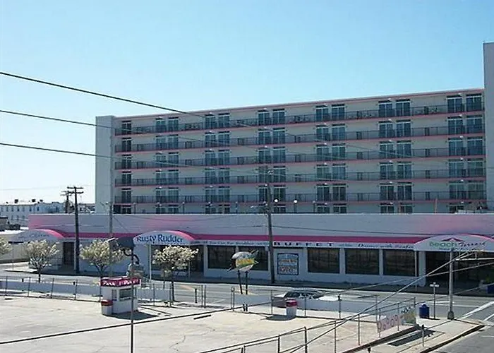 Beach Terrace Motor Inn is a 3-star family-friendly resort featuring oceanfront balconies with views of the Wildwood boardwalk and sandy beaches. The hotel offers free Wi-Fi, a nightclub, and an outdoor pool area.