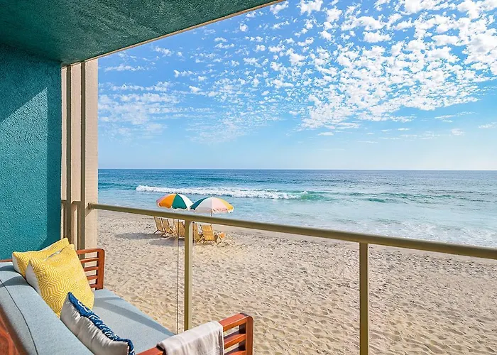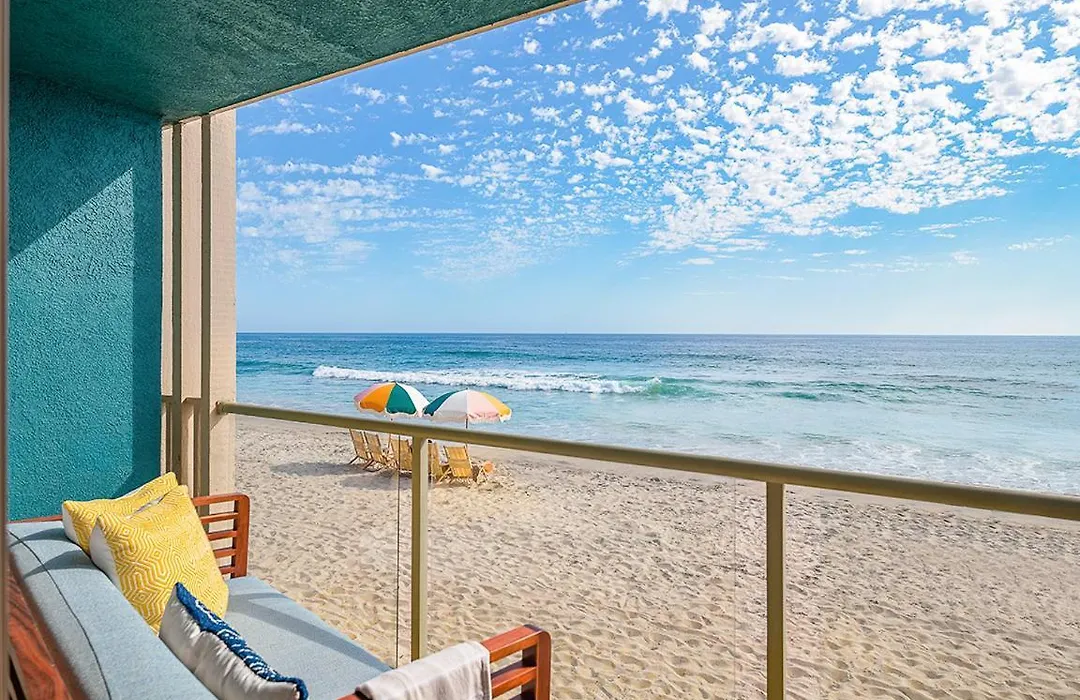 Beach Terrace, a 3-star Carlsbad hotel rated 9.6/10 on Booking.com, offers beachfront access with ocean views, a heated Shorebreak Pool, and family-friendly amenities. Guests can enjoy a Garden Pub with local beer and wine on tap, fire pits, and a convenient grab-and-go Market.