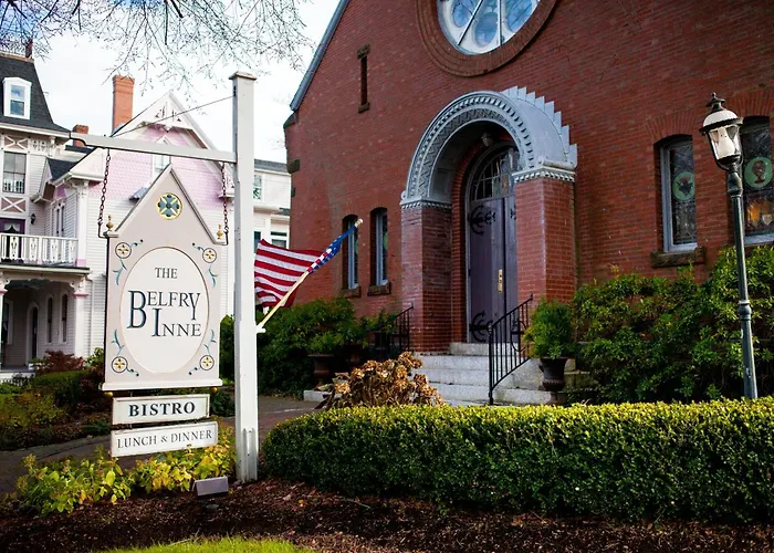 The Belfry Inn And Bistro features 19 guest rooms across three distinct historic buildings: The Painted Lady, The Abbey, and the Belfry Meetinghouse. Guests enjoy amenities such as flat-screen TVs, air conditioning, and private bathrooms, with select rooms offering gas fireplaces and two-person whirlpool tubs.