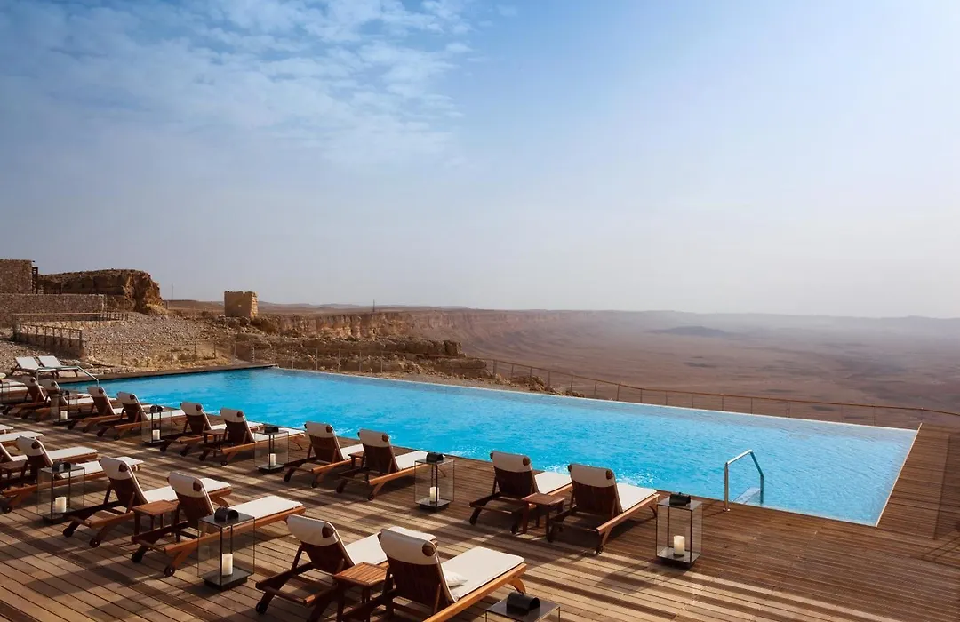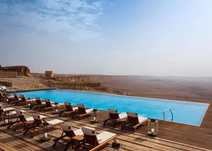 Beresheet by Isrotel Exclusive is a 5-star hotel with a 9.2/10 rating, offering panoramic views of the Ramon Crater. Guests can enjoy luxurious accommodations featuring spacious rooms, a renowned spa, and a magnificent pool.