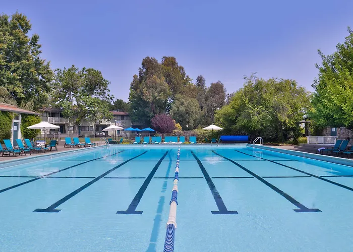 Recreational facilities at the Corte Madera Inn include a heated swimming pool, whirlpool spas, and outdoor sports amenities such as basketball and shuffleboard. The property is also accessible for guests with mobility and visual impairments.