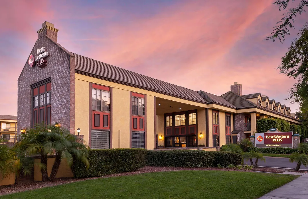 Best Western Plus Raffles Inn & Suites features stylish family accommodations tailored for comfort with a rating of 8.3/10 on Booking.com. This 3-star hotel includes amenities such as a newly renovated heated pool, complimentary high-speed wireless Internet, and direct access to shuttle services heading to Disneyland(R) Resort.