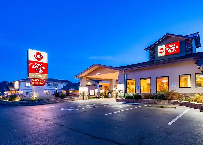 Leisure facilities at Best Western Plus Silver Saddle Inn include an outdoor pool, spa tub, and fitness center, allowing guests to unwind after a day of adventure. Outdoor activities such as hiking and mountain climbing are easily accessible.