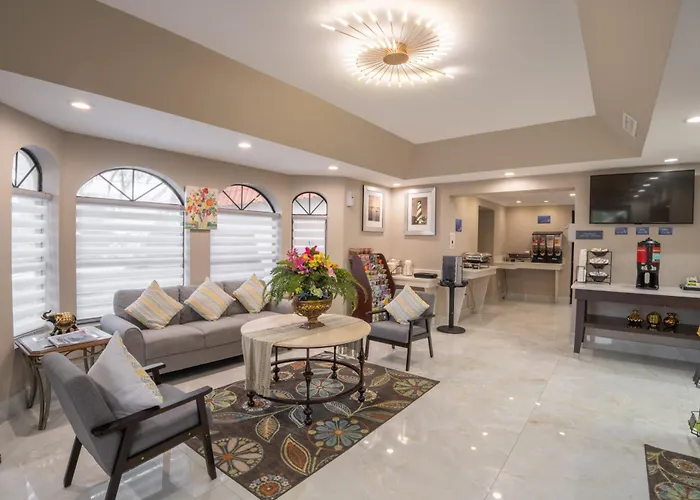 The hotel offers a free breakfast buffet each morning, providing a basic range of food options. Nearby dining options include La Cocina International Restaurant and Beachside Diner, both within 0.5 miles.