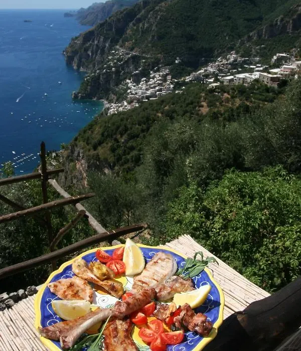 The hotel's restaurant offers traditional Positano cuisine made from ingredients harvested from the organic vegetable gardens on the premises. Guests can also enjoy a complimentary breakfast buffet and engage in a cooking class that includes picking fresh vegetables and eggs.