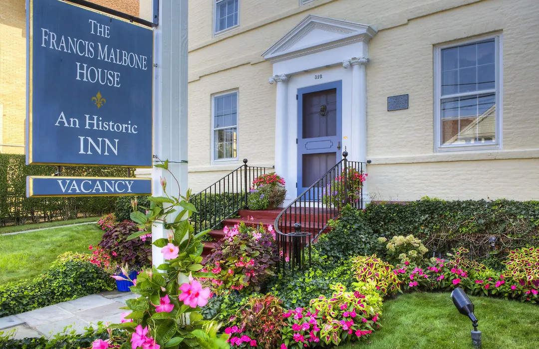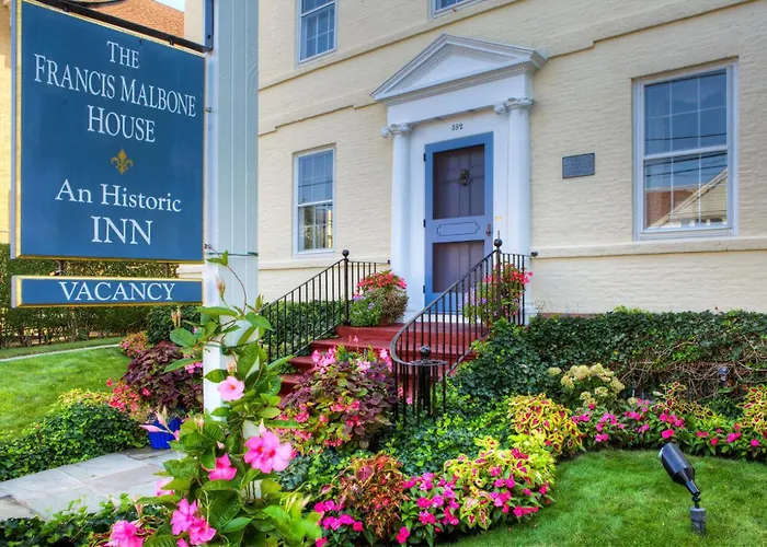 Francis Malbone House, rated 8.8/10 on Booking.com, is a historic 4-star inn that combines 18th century New England charm with modern amenities. It features elegant rooms, a gourmet breakfast, and a prime Thames Street address, steps from Newport's notable landmarks.