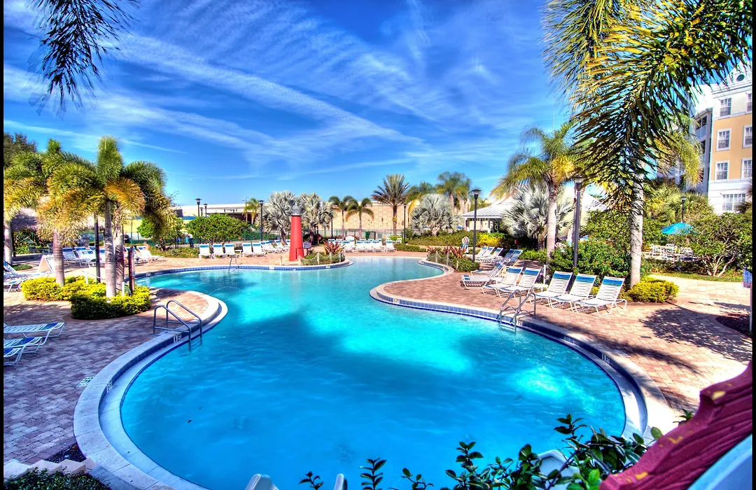 Calypso Cay Vacation Villas, a 3-star Kissimmee hotel rated 8.4/10 on Booking.com, offers spacious villa accommodations with full kitchens and various on-site recreational activities. Families can enjoy a year-round outdoor pool, waterslide, and a large pavilion for gatherings.