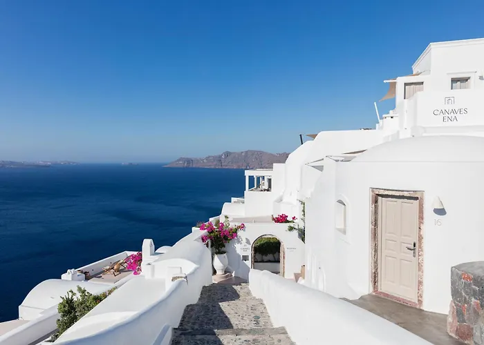 Canaves Ena - Small Luxury Hotels Of The World offers luxurious accommodations with panoramic views of the Caldera, volcano, and Aegean Sea. This 5-star Oia hotel features a private plunge pool, an outdoor pool, and free Wi-Fi throughout the property, ensuring a refined experience.