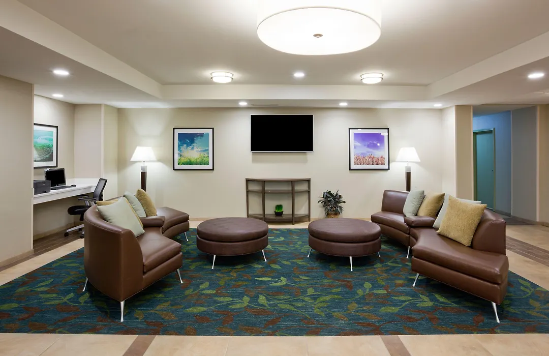 Each suite at Candlewood is furnished with air conditioning, a flat-screen TV with cable channels, and a private bathroom with free toiletries. Guests can utilize the Candlewood Cupboard for snacks and meal supplies available 24/7 on an honor system.