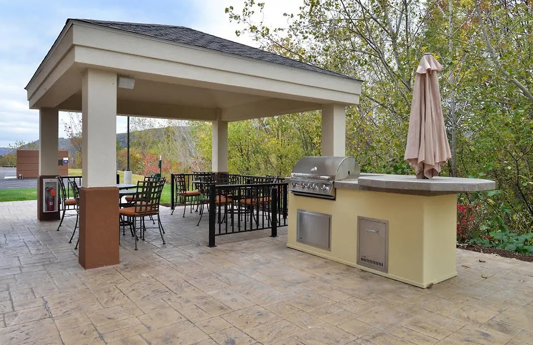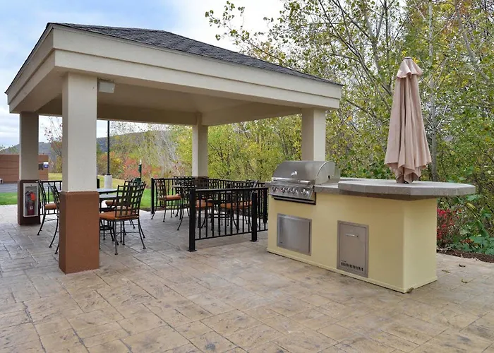 Candlewood Suites Sayre welcomes pets, accommodating furry friends with an additional fee. The hotel features free parking for guests and is conveniently located near outdoor attractions, including the Corning Museum of Glass and Tioga Downs Casino.