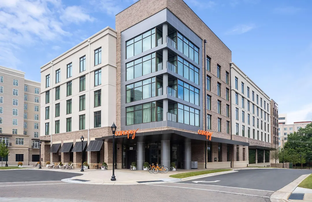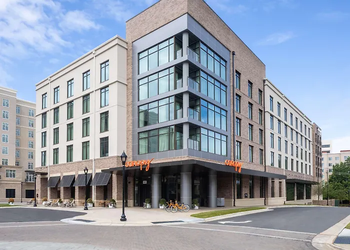 Canopy By Hilton Charlotte SouthPark is a 4-star hotel featuring a fitness center, private parking, and a farm-to-table restaurant. Guests can enjoy evening drink tastings, free bikes, and a vibrant space for both relaxation and meetings.