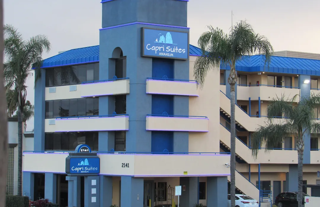 Capri Suites Anaheim features newly renovated suites and is a pet-friendly, family-friendly hotel with an 8.1/10 rating on Booking.com. The hotel offers complimentary breakfast and free WiFi across the property, conveniently located near many of Anaheim's major attractions.