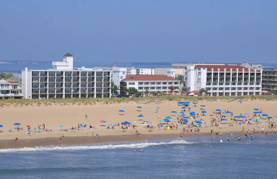 Castle In The Sand is a family-owned, 3-star oceanfront resort in Ocean City, providing a range of affordable accommodations including suites, cottages, and condominiums. Guests can enjoy amenities like an Olympic-sized swimming pool, on-site dining options, and direct beach access. The hotel boasts a prime location close to attractions including the Ocean City Boardwalk and the Roland E. Powell Convention Center.