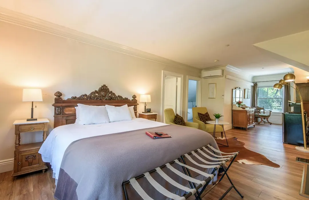The guest rooms at Cedar Gables Inn feature a luxurious blend of antique furniture and contemporary amenities, including state-of-the-art climate control systems. Each room includes a flat-screen TV, refrigerator, and a private bathroom equipped with rain showers and deep soaking tubs.