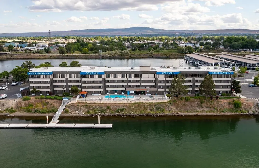 Clover Island Inn offers a serene setting on the banks of the Columbia River and features 150 sleeping rooms, including suites with river views. This pet-friendly, three-star Kennewick hotel provides a large outdoor pool, hot tub, and dining at the Crows Nest Bar & Grill.