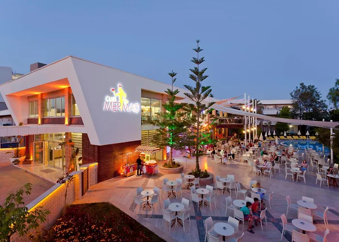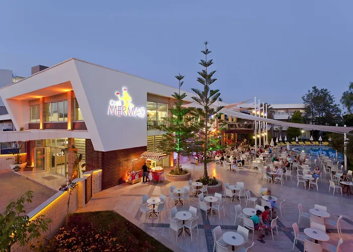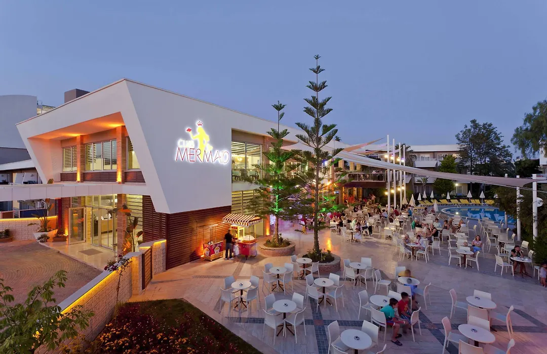 Club Mermaid Village, a 4-star Avsallar hotel with a rating of 8.1/10 on Booking.com, features multiple pools, a gym, and a cinema. The property offers all-inclusive dining with various local drink options and hosts an array of leisure activities.