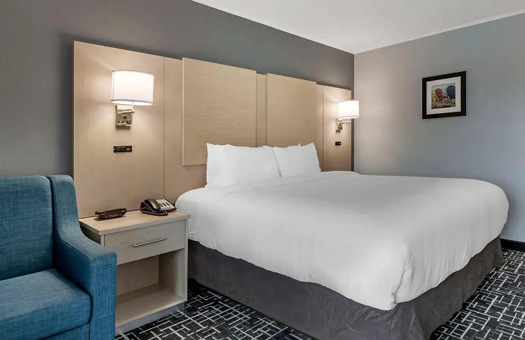 Guest rooms at Comfort Inn include pillowtop beds with premium bedding, microwaves, refrigerators, and 42-inch flat-screen TVs. Some units offer a seating area for relaxation after a busy day.
