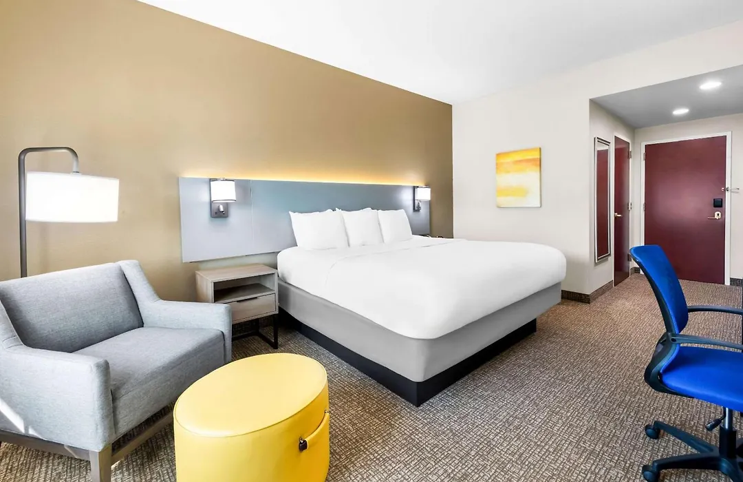 Guests can enjoy a free hot breakfast buffet featuring famous waffles and other healthy options. Nearby dining options are also accessible for additional choices.