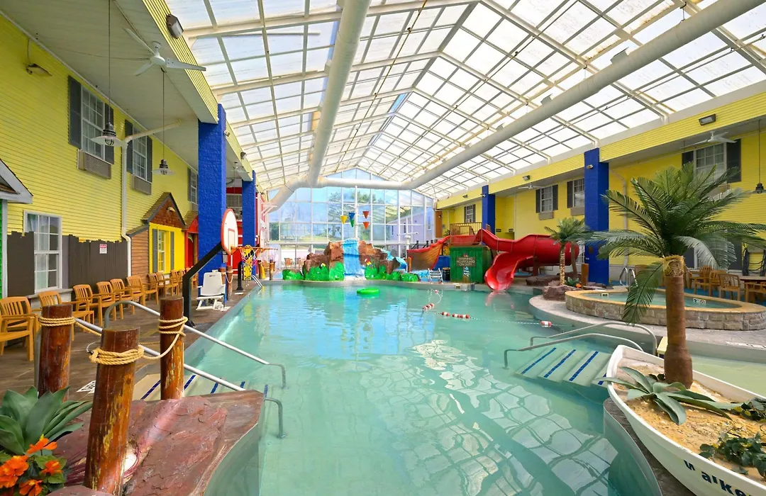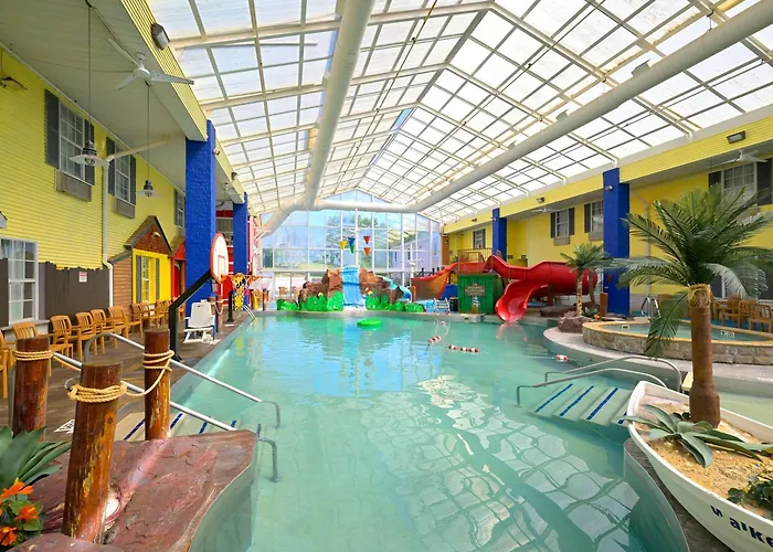 The indoor water park includes features such as water basketball hoops, hot tubs, and a kiddie pool area, making it a versatile venue for family fun. Nearby attractions like Charles Mill Marina provide opportunities for boating and fishing, enhancing the stay for adventurous visitors.