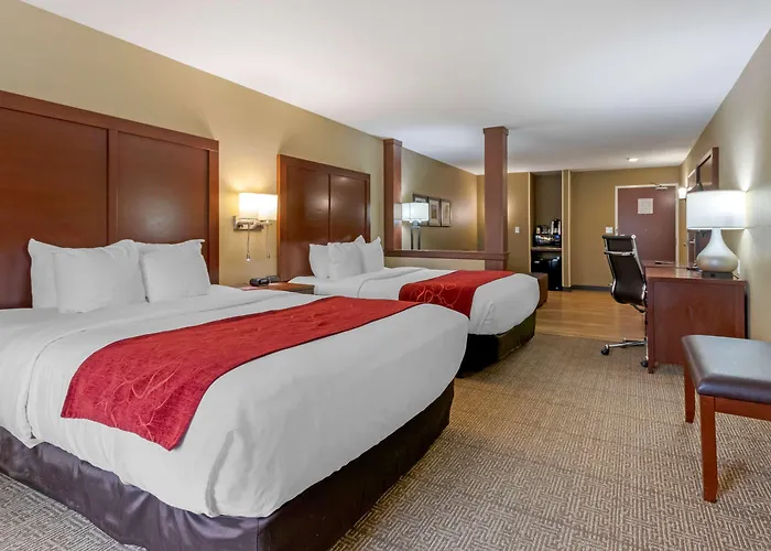 For recreation, Comfort Suites features an indoor pool and a spa tub. Business amenities include a business center and dry cleaning services, enhancing convenience for corporate travelers.