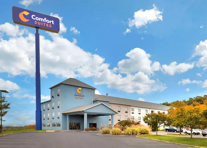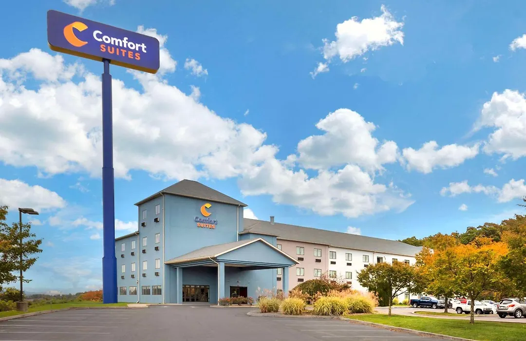 Comfort Suites is a 3-star all-suites hotel with an 8.6/10 rating on Booking.com, offering amenities like free WiFi, an indoor heated pool, and complimentary weekday newspapers. The hotel features convenient access to local attractions and dining options.