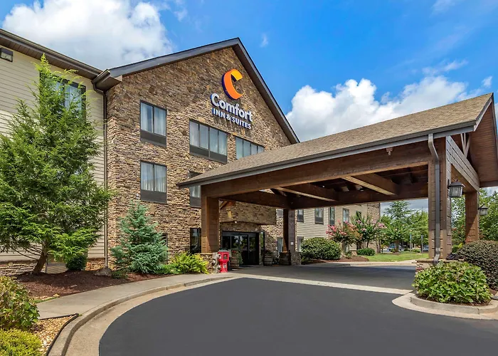 Comfort Inn & Suites Blue Ridge is a 3-star pet-friendly family hotel featuring modern amenities and easy access to nearby attractions. Guests can enjoy a fresh hot breakfast and a spacious guest lounge with oversized chairs around a rock fireplace.