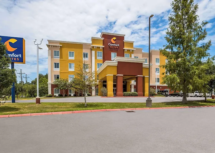 Accommodations at Comfort Suites include oversized suites featuring a flat-screen television, refrigerator, microwave, and sofa sleeper. Free wireless high-speed Internet access and coffee are available throughout the property.