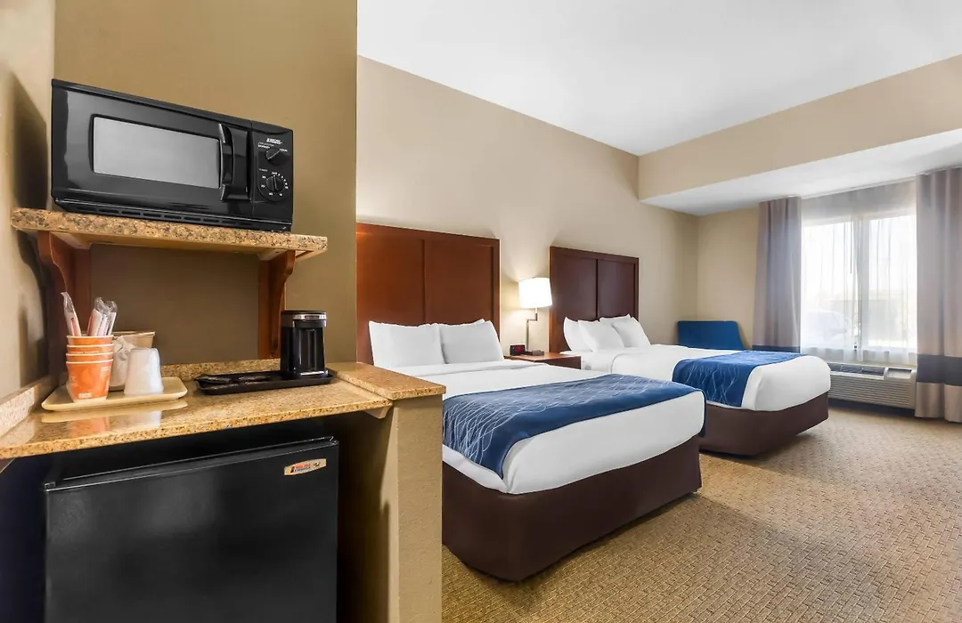 Rooms at the Comfort Inn provide refrigerators, microwaves, coffee makers, and flat-screen televisions. Bathrooms feature bathtubs or showers with hairdryers. The spacious twin/double room includes a washing machine and a safe deposit box.