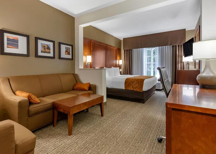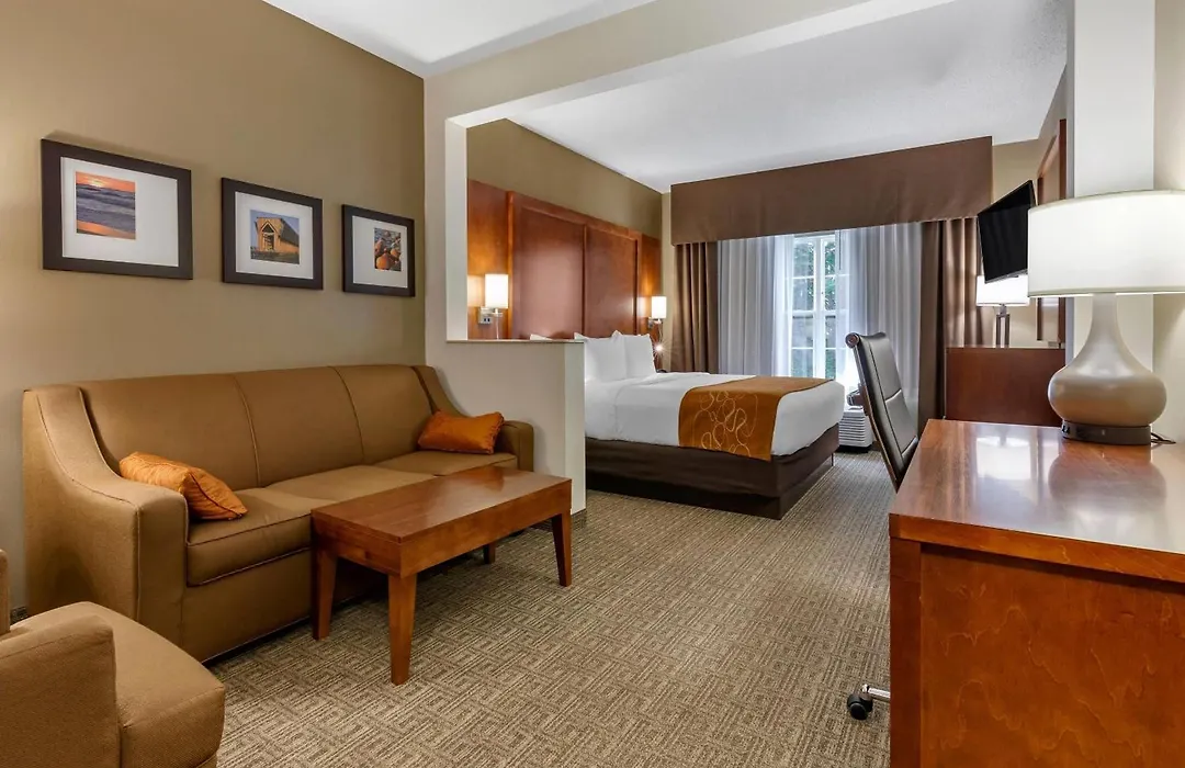 Every suite at Comfort Suites is equipped with coffee makers, microwaves, refrigerators, and flat-screen televisions with DirecTV. Some suites feature a sofa bed for additional sleeping space, catering to larger groups.