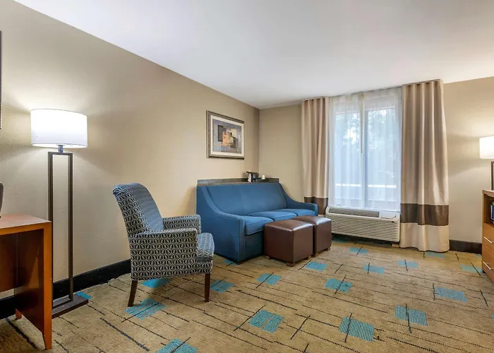 Comfort Suites Near Mcas Beaufort, a 3-star hotel, features spacious accommodations with premium bedding and air conditioning. Guests enjoy amenities such as a fitness center and indoor pool.