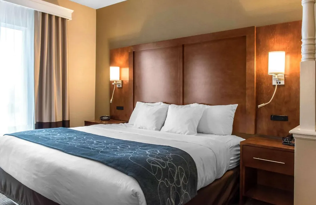 Each spacious guest suite at Comfort Suites includes refrigerators, microwaves, coffee makers, and cable television with free HBO. The modern décor features a separate work and relaxation area, flat-screen TV, and free WiFi.