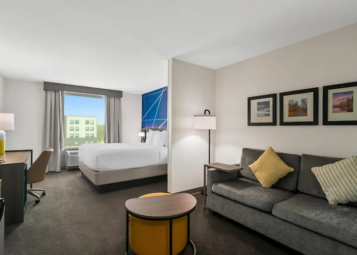 The hotel features spacious suites equipped with premium bedding, including down pillows and pillow-top mattresses, as well as conveniences like a flat-screen TV, USB ports, a microwave, and a refrigerator. Guests can enjoy free WiFi and separate sitting areas for relaxation or work.