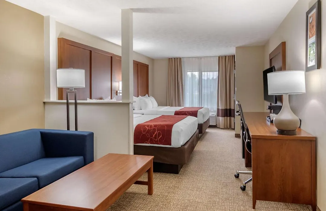 Comfort Suites Speedway - Kansas City is a 3-star hotel featuring smoke-free, pet-friendly accommodations with spacious suites. Amenities include free hot breakfast, a heated indoor pool, and a 24-hour business center.