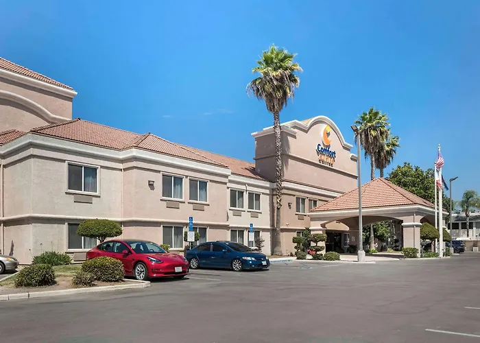 Comfort Suites, rated 8.5/10 on Booking.com, features a seasonal outdoor pool and a fitness center, catering to both leisure and business travelers. This 3-star Tulare hotel offers amenities such as free hot breakfast and access to a business center.