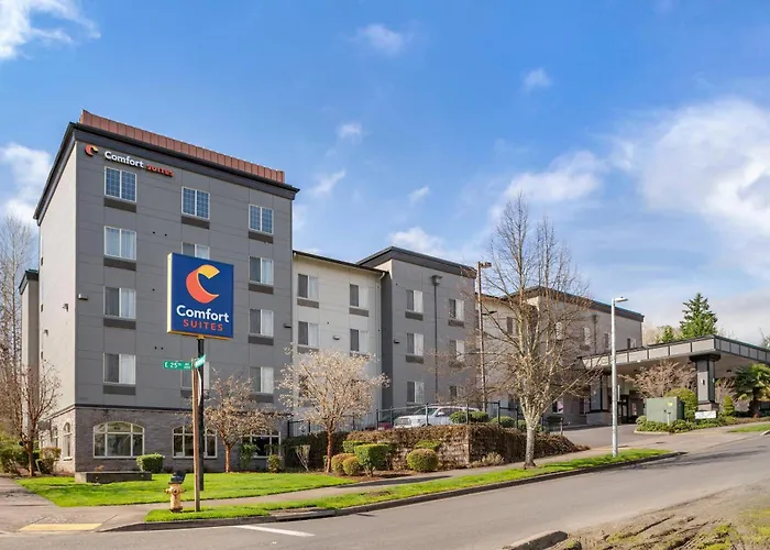 Comfort Suites Eugene University offers modern, spacious suites with contemporary decor and a convenient location for guests visiting the University of Oregon. This 3-star hotel features a heated indoor pool, a fitness center, and complimentary breakfast.